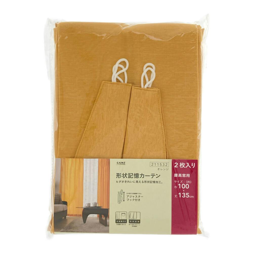 形状記憶カーテン ノース オレンジ 100×135cm 2枚組