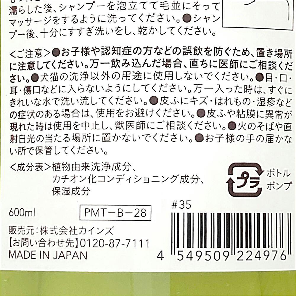 Pet’sOne 無添加トリートメントシャンプー 本体 600ml