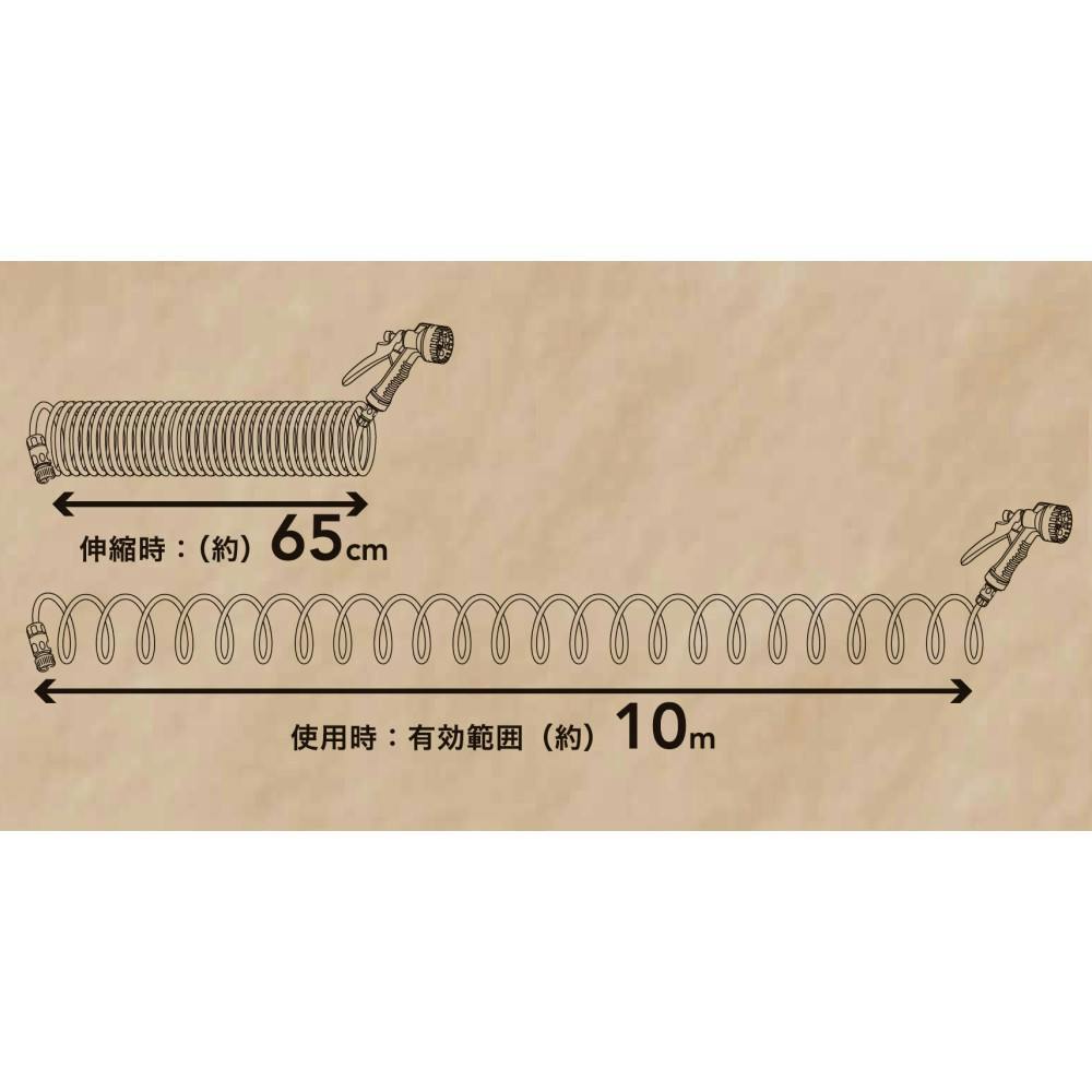 カインズ 巻き取りがいらないのびるカールホース 長さ10m CH-10D 外径12mm 内径9mm 丸型蛇口外径16mm ノズルパターン6種類