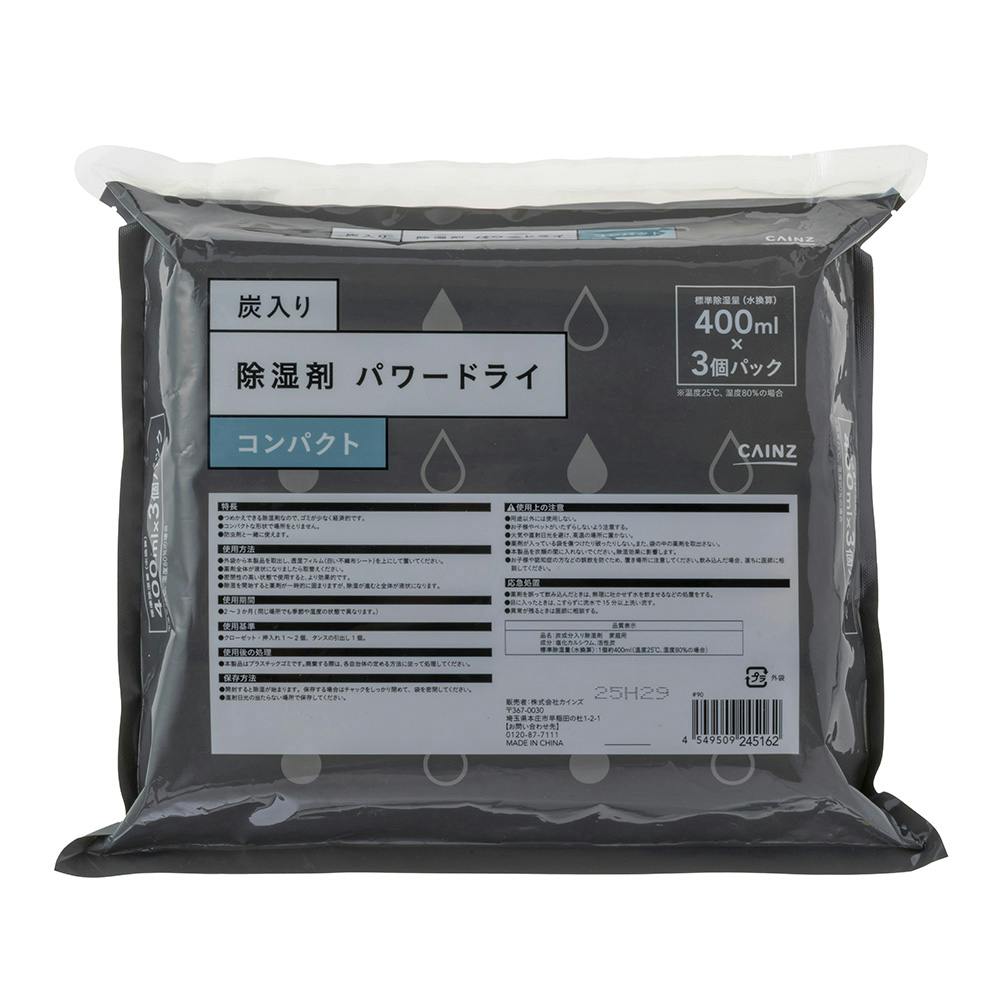炭入り除湿剤 パワードライ コンパクト 本体 400ml×3個