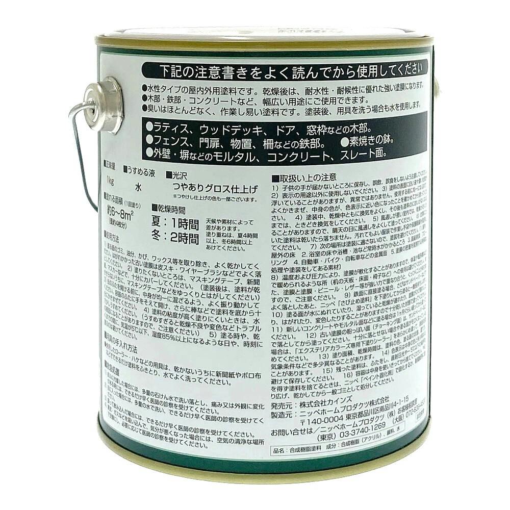 ●水性タイプの屋内外用塗料です。乾燥後は、耐水性・耐候性に優れた強い塗膜になります。●木部・鉄部・コンクリートなど、幅広い用途にご使用できます。●臭いはほとんどなく、作業し易い塗料です。塗装後、用具を洗う場合も水を使用します。