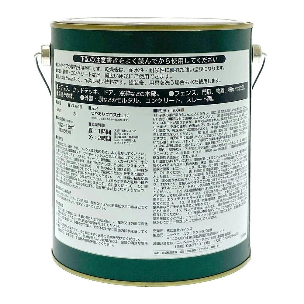 ●水性タイプの屋内外用塗料です。乾燥後は、耐水性・耐候性に優れた強い塗膜になります。●木部・鉄部・コンクリートなど、幅広い用途にご使用できます。●臭いはほとんどなく、作業し易い塗料です。塗装後、用具を洗う場合も水を使用します。