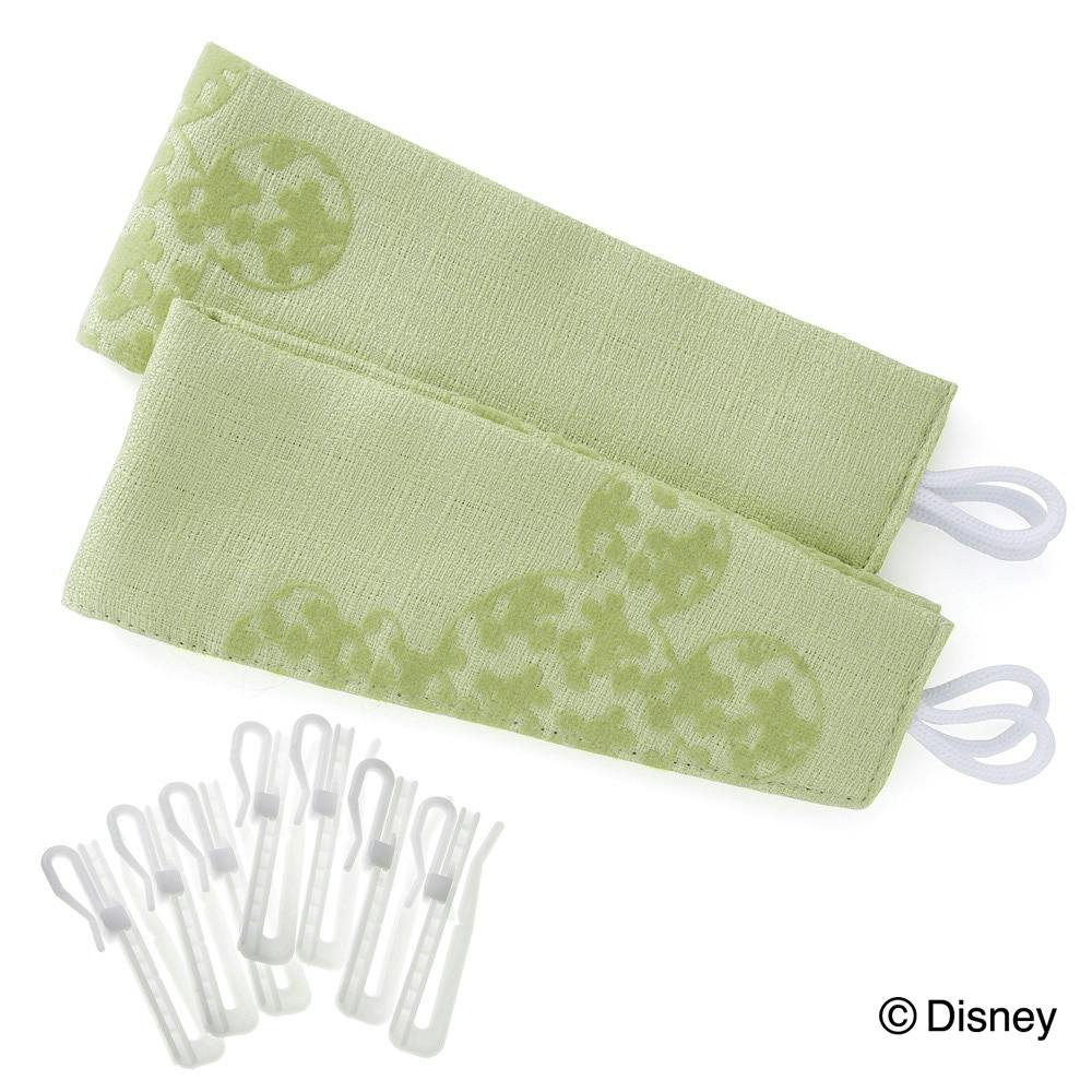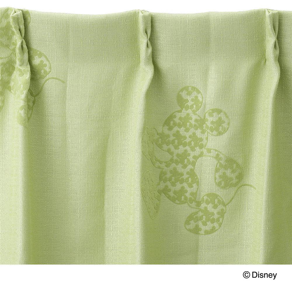 ディズニー カーテン ミッキーマウス グリーン 100×135cm 2枚組 洗濯OK 形状記憶 遮光99.40% 裏地付き タッセル付き【別送品】