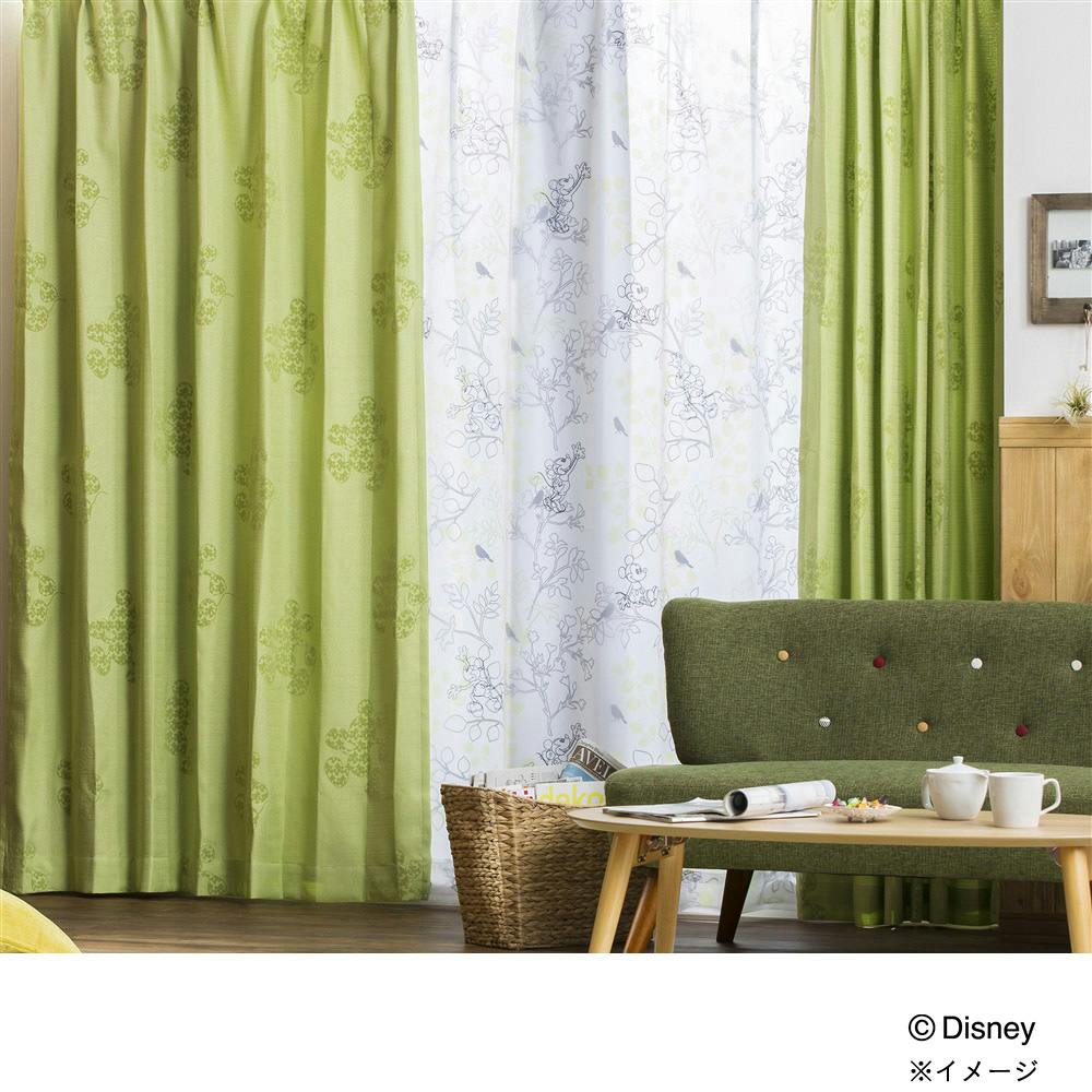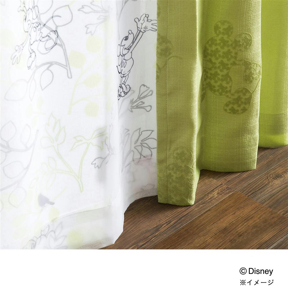 ディズニー レースカーテン ミッキーマウス グリーン 100×208cm 2枚組 洗濯OK UVカット92.6% ミラー加工【別送品】