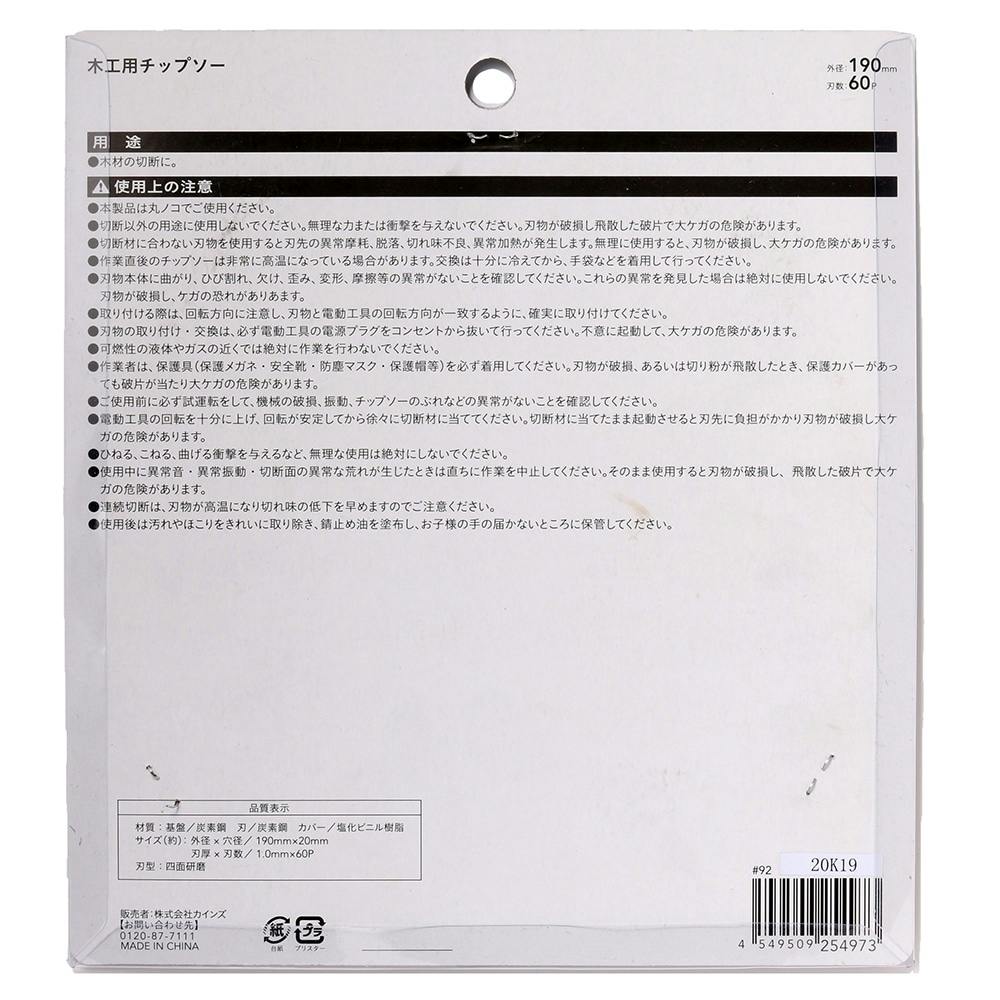 • カインズ 木工用チップソー 190mm×60P