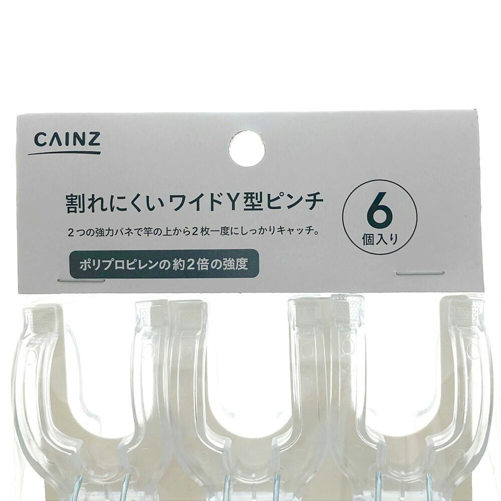 割れにくいワイドY型ピンチ 6個入り クリア