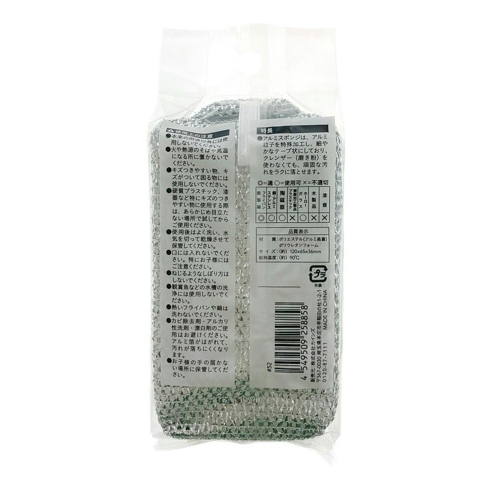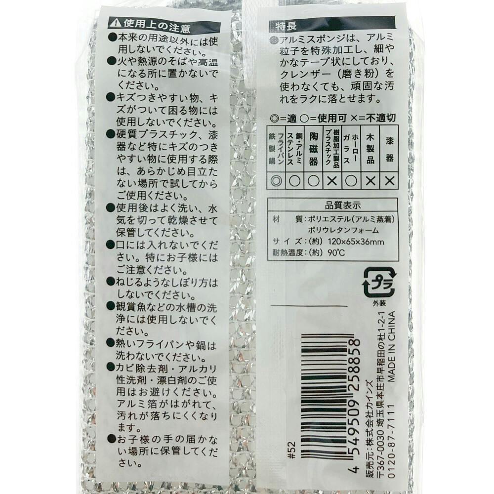 アルミスポンジは、アルミ粒子を特殊加工し、細やかなテープ状にしており、クレンザー(磨き粉)を使わなくても、頑固な汚れをラクに落とせます。
