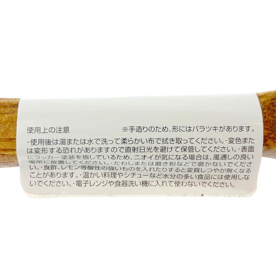 ●使用後は湯または水で洗って柔らかい布で拭き取ってください。●変色または変形する恐れがありますので直射日光を避けて保管してください。●表面にラッカー塗装を施しているため、ニオイが気になる場合は、風通しの良い場所に放置してください。