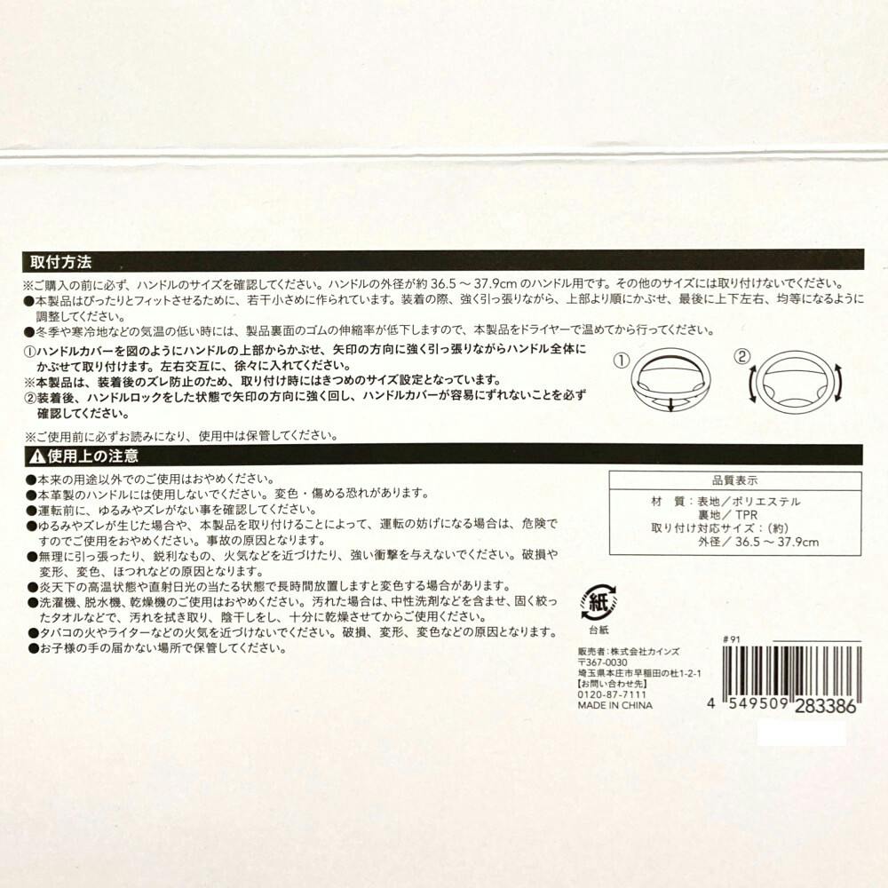 ●本来の用途以外でのご使用はおやめください。●本革製のハンドルには使用しないでください。変色・傷める恐れがあります。●運転前に、ゆるみやズレがない事を確認してください。