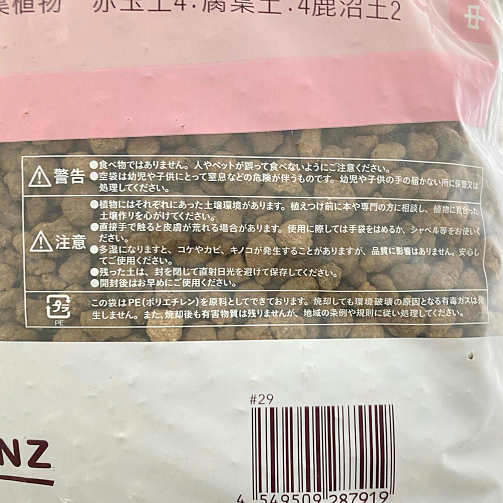 ●植物にはそれぞれにあった土壌環境があります。植えつけ前に本や専門の方に相談し、植物に見合った土壌作りを心がけてください。●直接手で触ると皮膚が荒れる場合があります。使用に際しては手袋をはめるか、シャベル等をお使いください。など