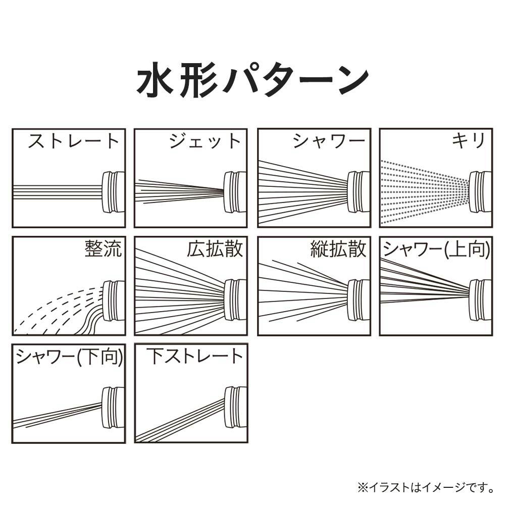 ストレート、ジェット、シャワー、キリ、整流、広拡散、縦拡散、シャワー上向、シャワー下向、下ストレート