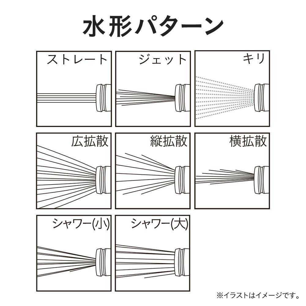 ストレート、ジェット、キリ、広拡散、縦拡散、横拡散、シャワー(小)、シャワー(大)