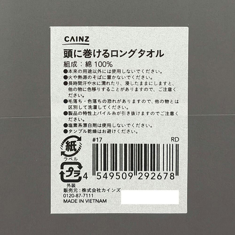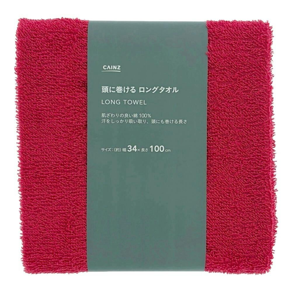 カインズ 頭に巻けるロングタオル 34×100cm レッド