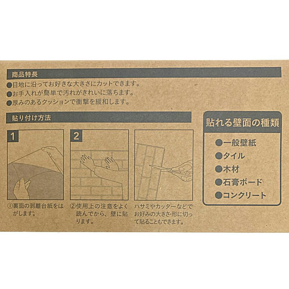 ①裏面の剥離台紙をはがします。②使用上の注意をよく読んでから、壁に貼ります。ハサミやカッターなどでお好みの大きさ・形に切って貼ることもできます。
