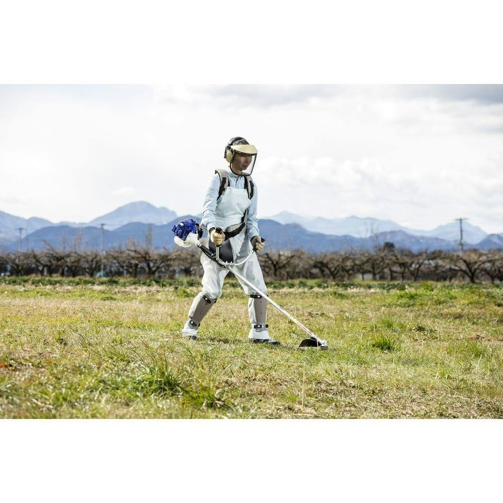 飛び石等の飛散物が付き物の刈払作業をされる方、野外で地面に膝・すねをつけて作業される方の足を安心ガード!