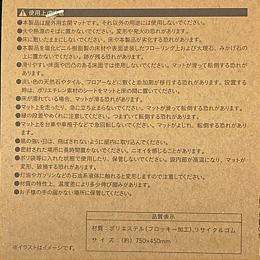 ●本製品は屋外用玄関マットです。それ以外の用途には使用しないでください。●火や熱源のそばに置かないでください。変形や発火の恐れがあります。
