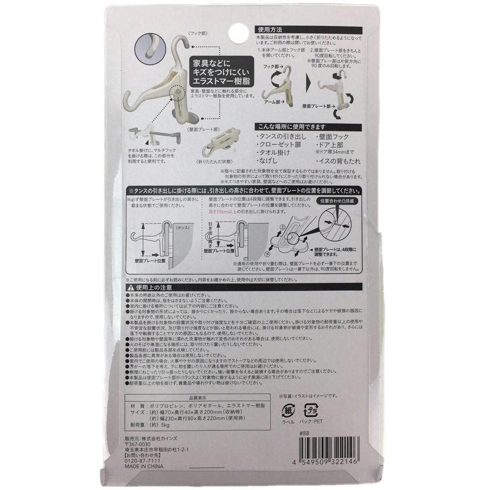 本製品は収納性を考慮し、小さく折りたためるようになっています。ご利用の際は開いてお使いください。1.本体アーム部とフック部を開いてください。2.壁面プレート部をきちんと90度回転してください。