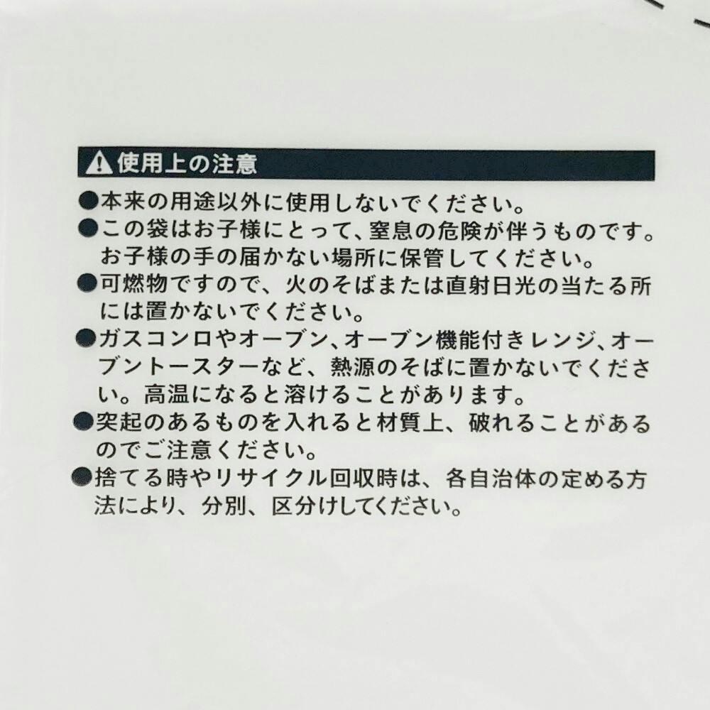 ●本来の用途以外に使用しないでください。●この袋はお子様にとって、窒息の危険が伴うものです。お子様の手の届かない場所に保管してください。●可燃物ですので、火のそばまたは直射日光の当たる所には置かないでください。