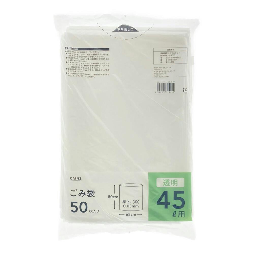 ゴミ袋 45L 透明 50枚 厚さ0.03mm
