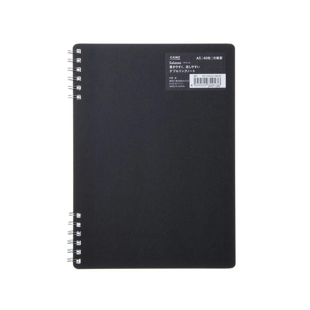 カインズ Salasse サラッセ ダブルリングノート A5 40枚 方眼罫 ブラック