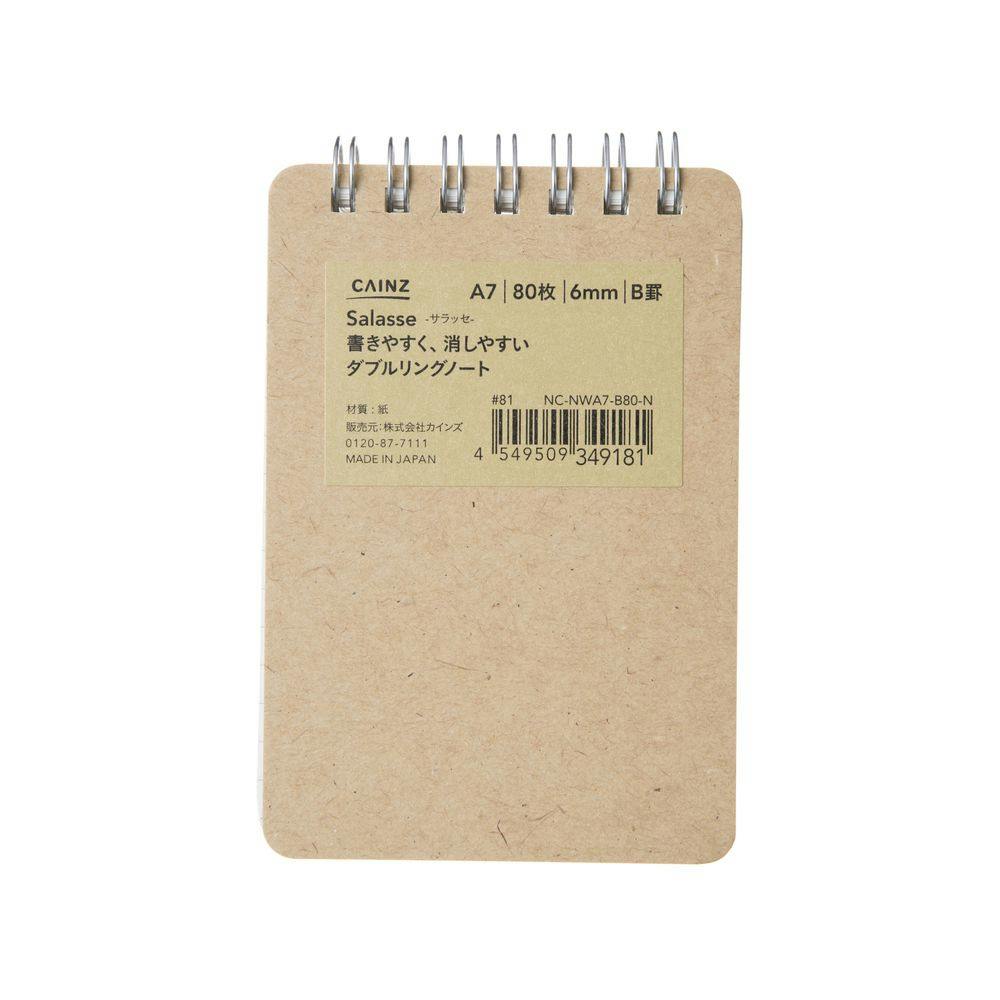 カインズ Salasse サラッセ ダブルリングノート A7 80枚 B罫 6mm ナチュラル