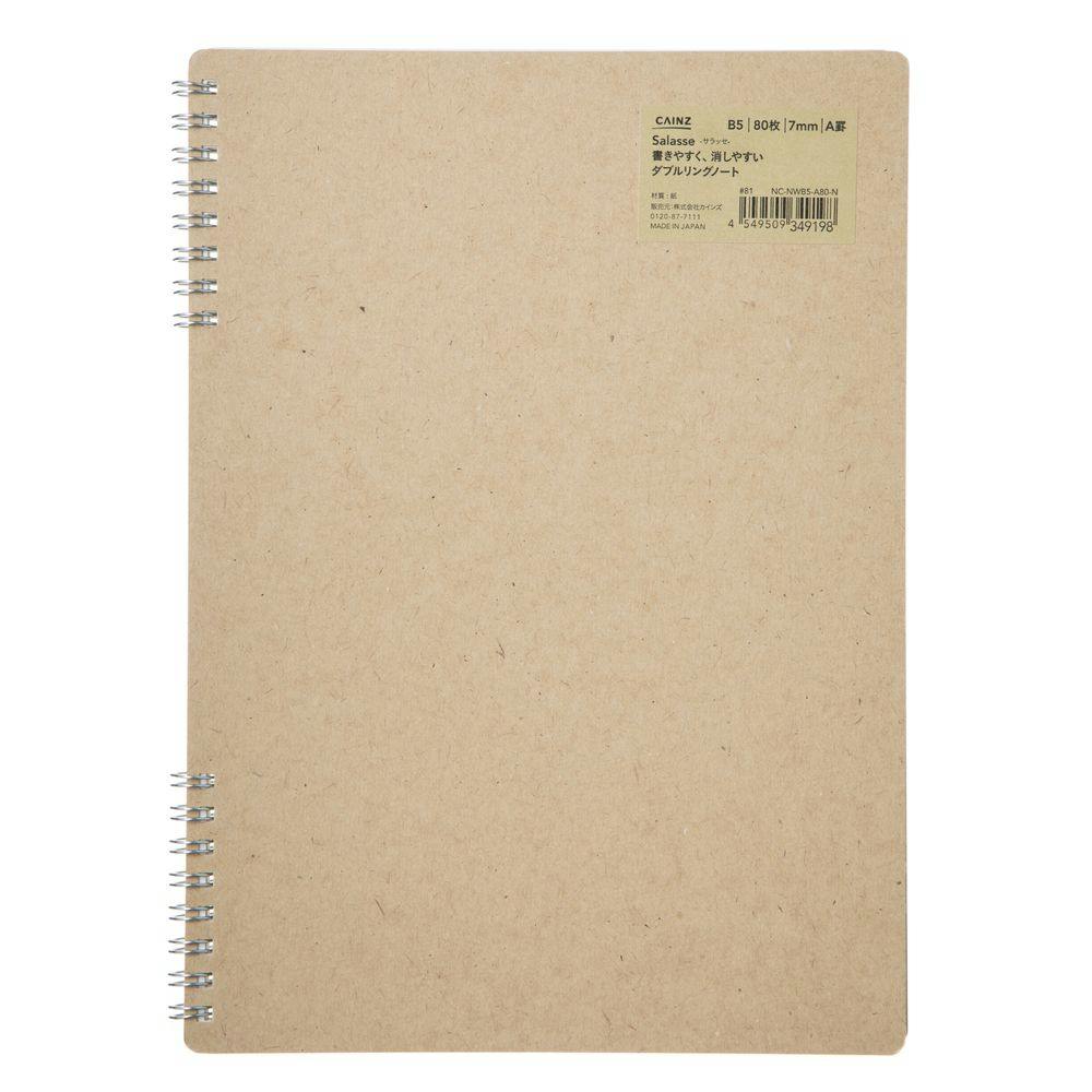 カインズ Salasse サラッセ ダブルリングノート B5 80枚 A罫 7mm ナチュラル