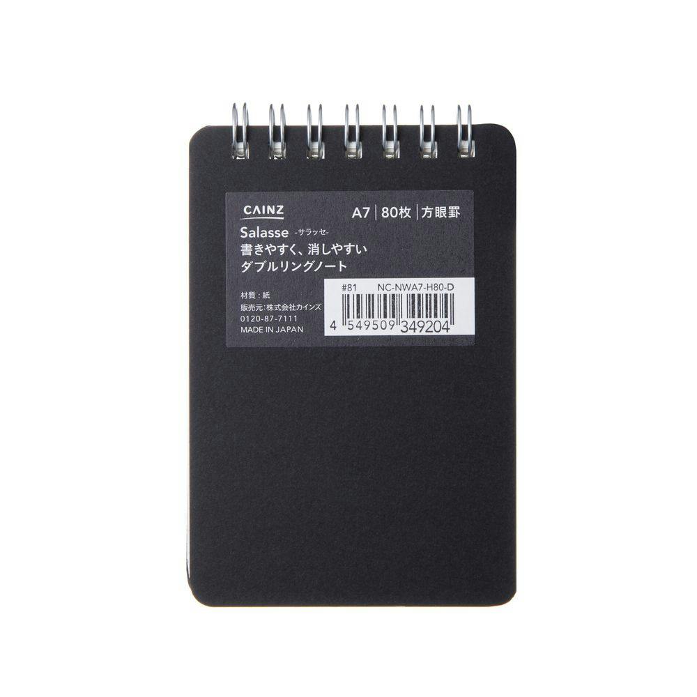 カインズ Salasse サラッセ ダブルリングノート A7 80枚 方眼罫 ブラック