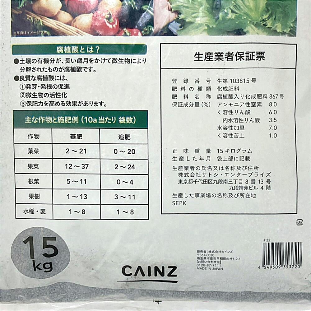 カインズ 地力をたかめる腐植入化成肥料 8-6-7 15kg