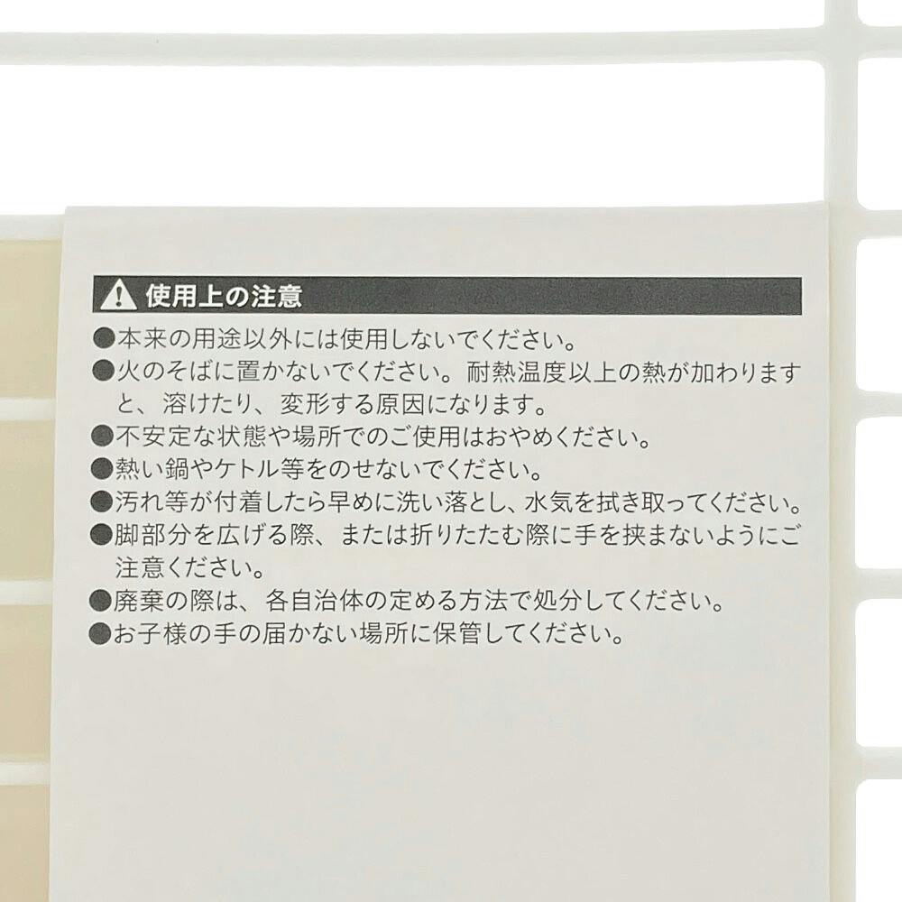 ●本来の用途以外には使用しないでください。●火のそばに置かないでください。耐熱温度以上の熱が加わりますと、溶けたり、変形する原因になります。●不安定な状態や場所でのご使用はおやめください。●熱い鍋やケトル等をのせないでください。
