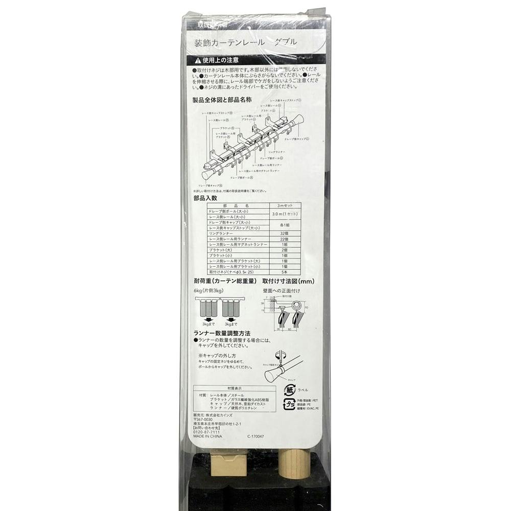 ●ドレープ側ポール(大・小)、レース側レール(大・小):3.0m(1セット) ●ドレープ側キャップ(大・小)、レース側キャップストップ(大・小):各1組 ●ブラケット(大):2個 ●ブラケット(小):1個 ●レース側レール用ブラケット(大):1個