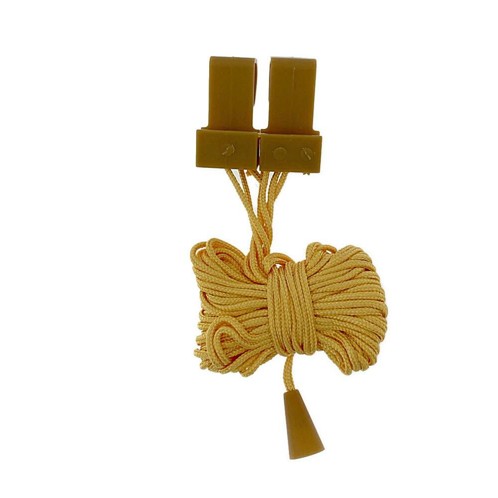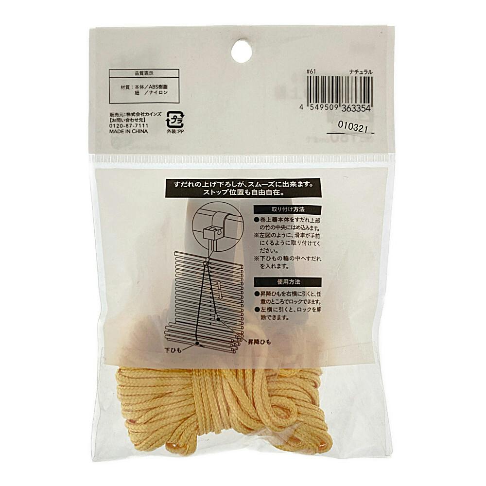 ●巻上器本体をすだれ上部の竹の中央にはめ込みます。●滑車が手前にくるように取り付けてください。●下ひもの輪の中へすだれを入れます。