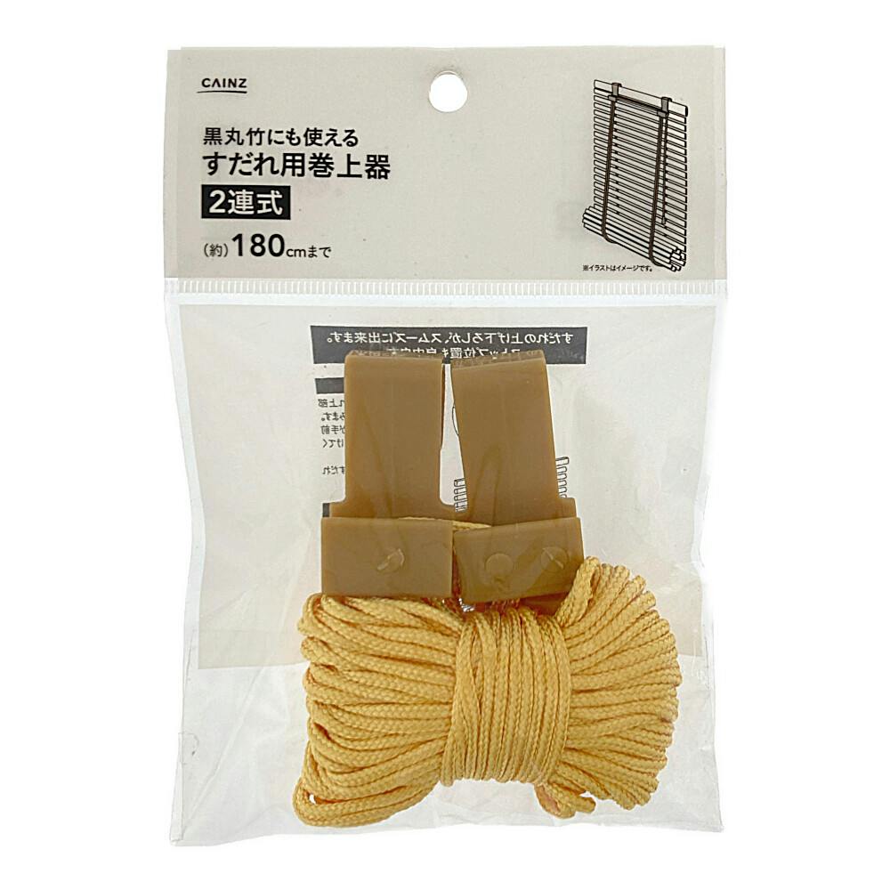 天津・黒丸竹すだれ 2連式巻上器 ダブル 180cm ナチュラル すだれの巻き上げ ストップ位置自在 幅132・176cm用