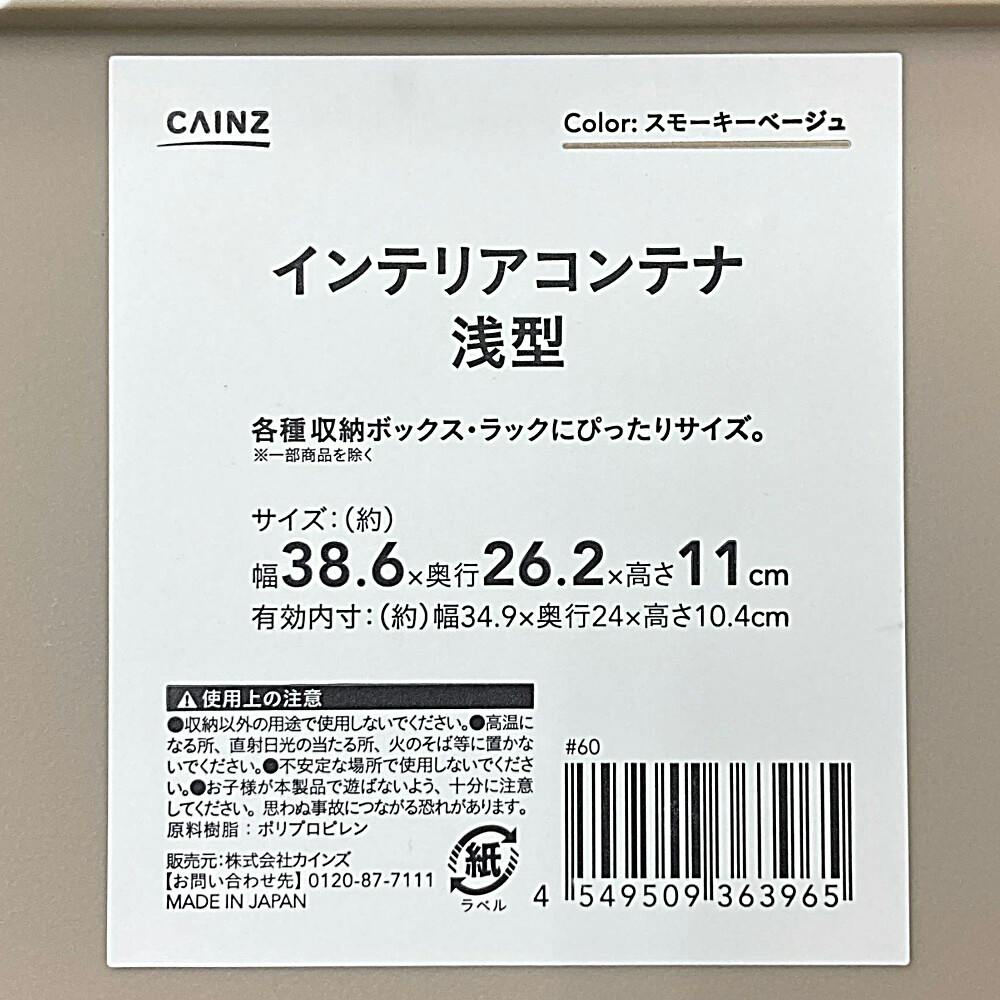 • インテリアコンテナ 浅型 スモーキーベージュ