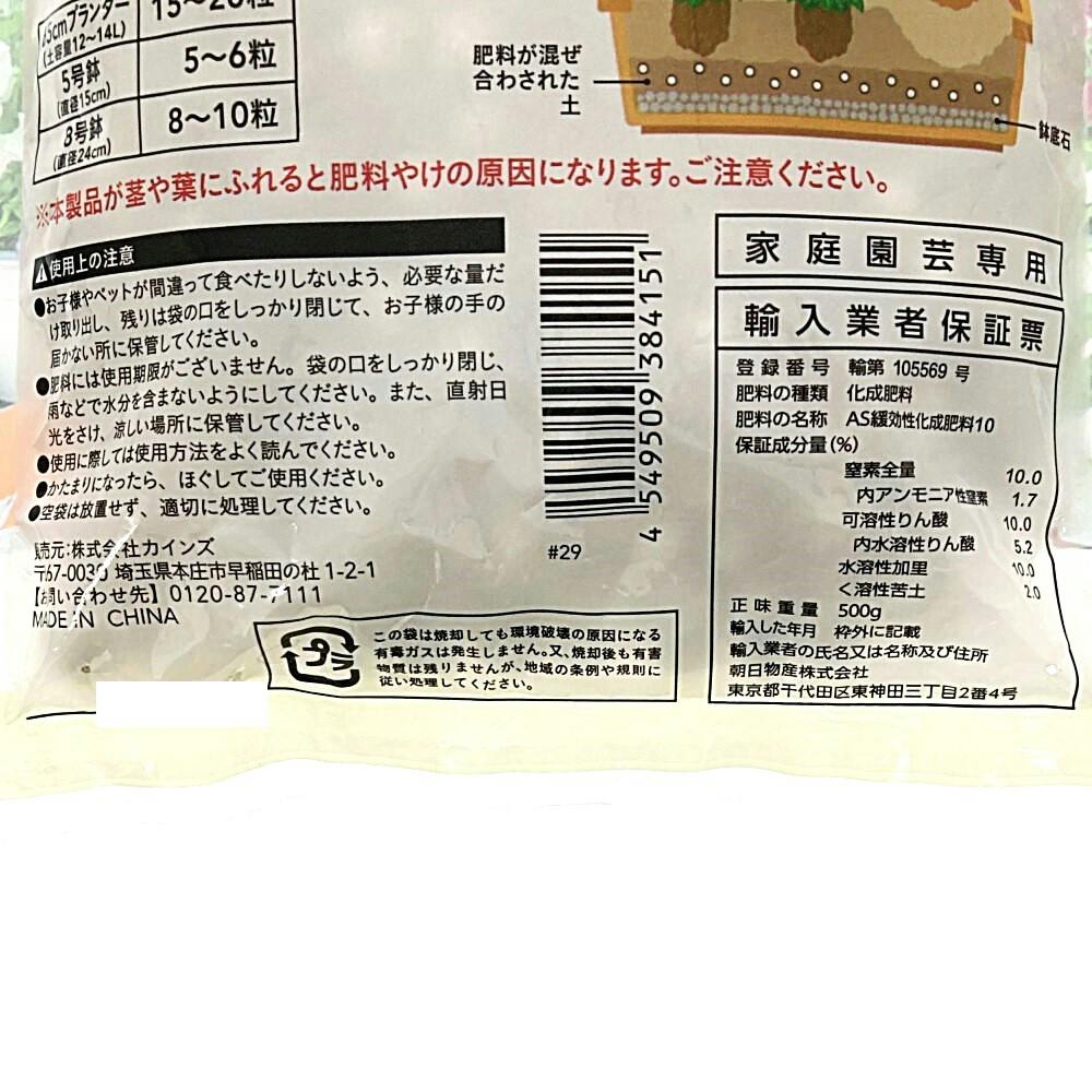 ●お子様やペットが間違って食べたりしないよう、必要な量だけ取り出し、残りは袋の口をしっかり閉じて、お子様の手の届かない所に保管してください。●肥料には使用期限がございません。袋の口をしっかり閉じ、雨などで水分を含まないようにしてください。