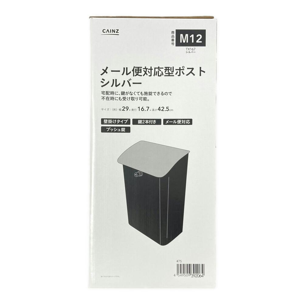 メール便対応型ポスト シルバー TX167 郵便ポスト 幅27cm 高さ42cm 奥行き15cm