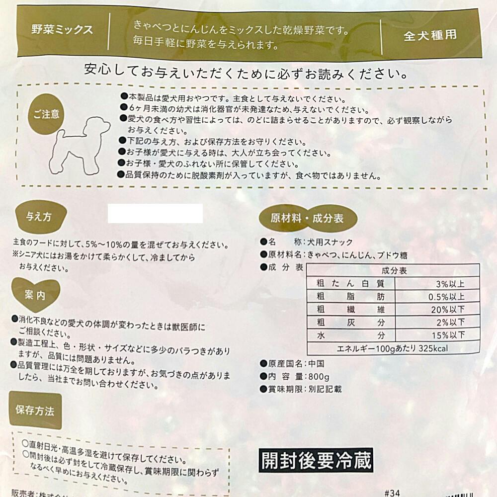 ●本製品は愛犬用おやつです。主食として与えないでください。●6ヶ月未満の幼犬は消化器官が未発達なため、与えないでください。等