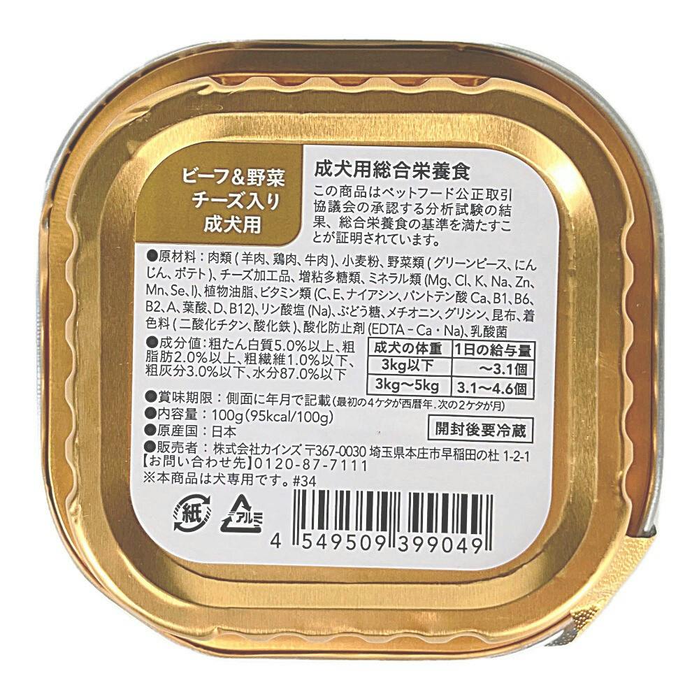 Pet’sOne ドッグミール トレイタイプ ビーフ&野菜 チーズ入り 成犬用 100g
