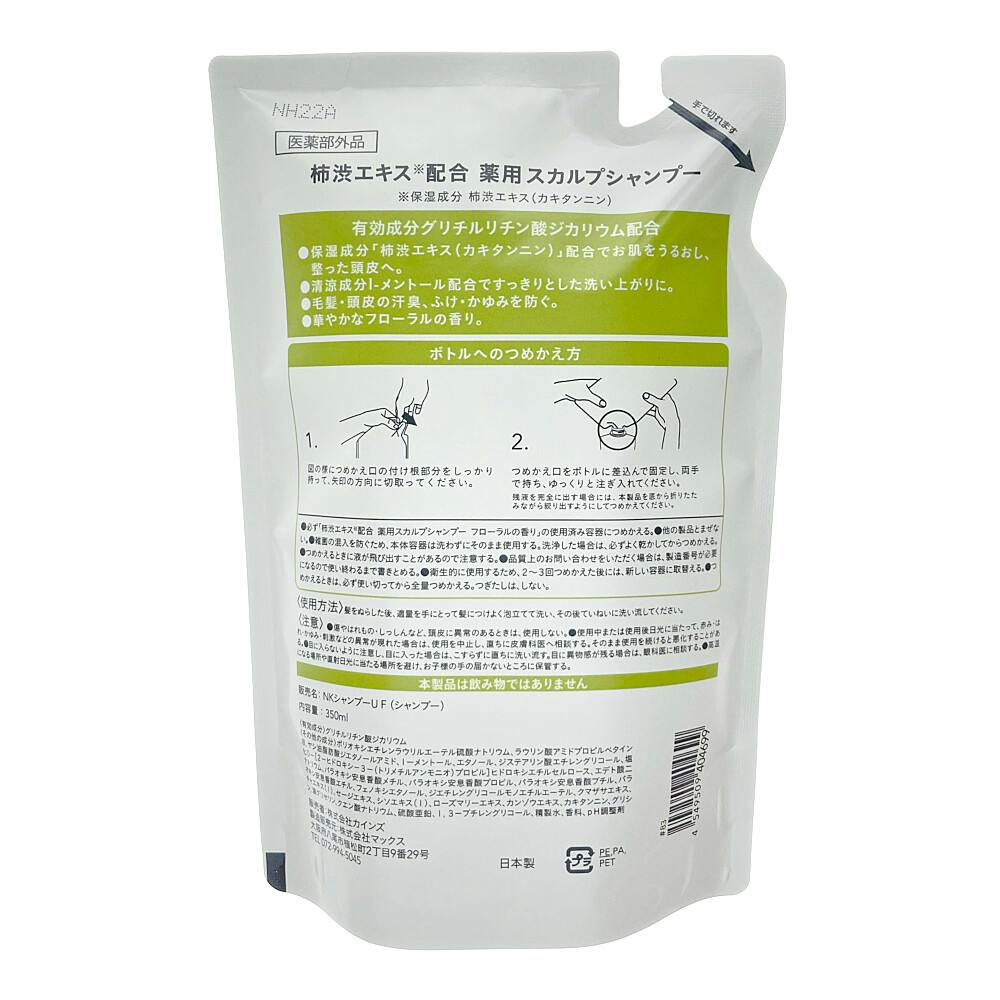 ●必ず「柿渋エキス*配合 薬用スカルプシャンプー フローラルの香り」の使用済み容器につめかえる。●他の製品とまぜない。●雑菌の混入を防ぐため、本体容器は洗わずにそのまま使用する。洗浄した場合は、必ずよく乾かしてからつめかえる。●つめかえるときに液が飛び出す