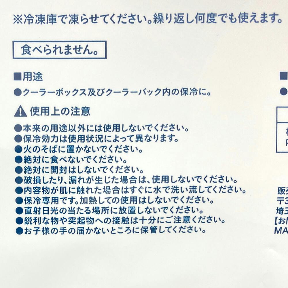 クーラーボックス及びクーラーバック内の保冷に。