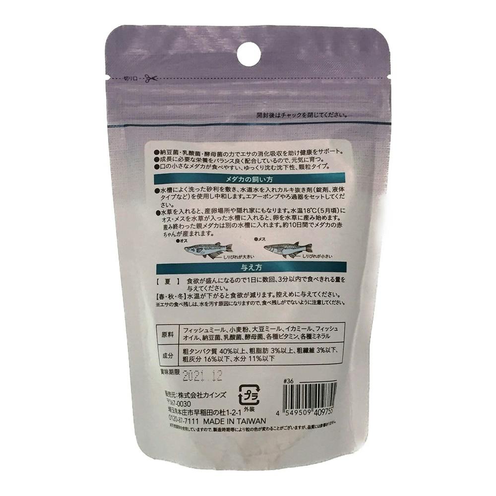 ●納豆菌、乳酸菌、酵母菌の力でエサの消化吸収を助け健康をサポート。●成長に必要な栄養をバランス良く配合しているので、元気に育つ。●口の小さなメダカが食べやすい、ゆっくり沈む沈下性、顆粒タイプ。