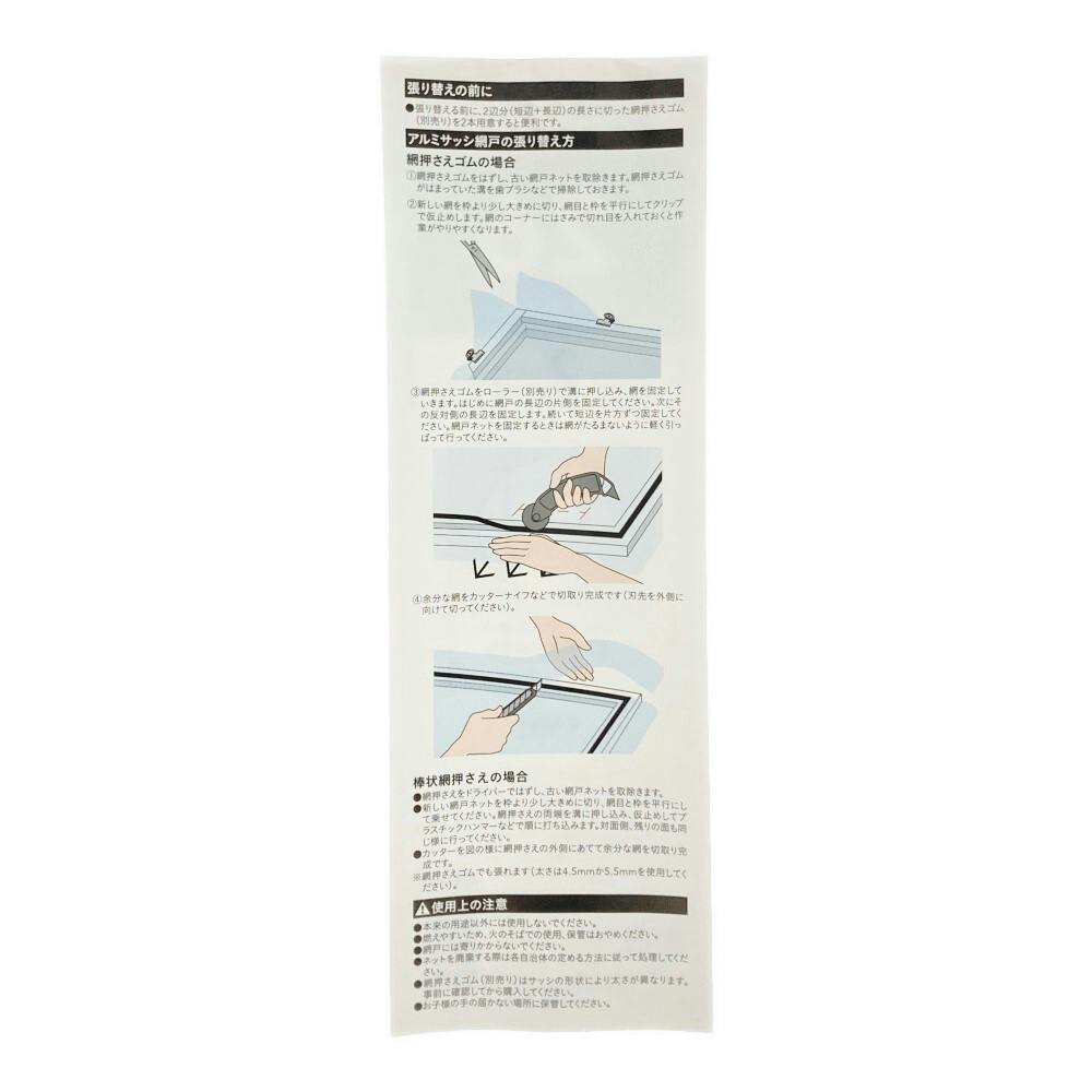 ●ネットを網押さえゴムで網戸枠に固定します。●張替えには専用ローラー、網押さえゴムをご用意ください。