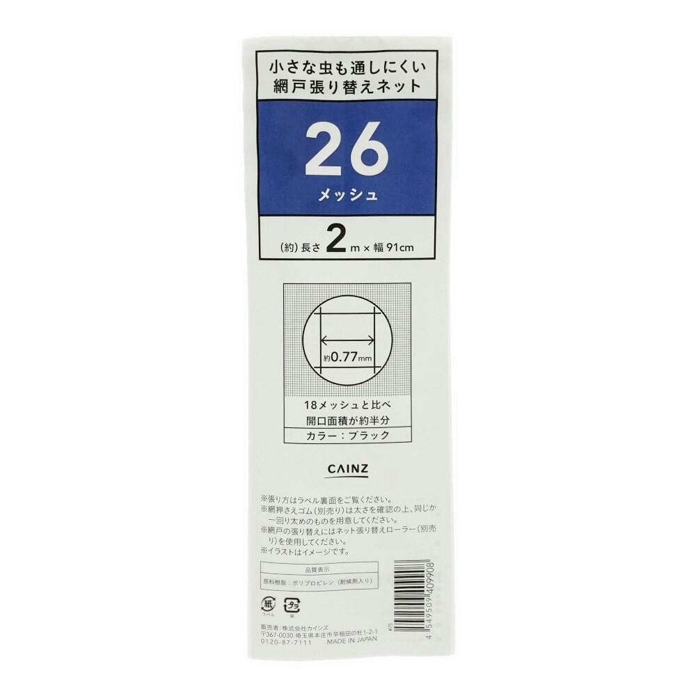 カインズ オリジナル 網戸張り替えネット 虫を通しにくい 26メッシュ ブラック 幅91cm 長さ2m 網戸張替え網
