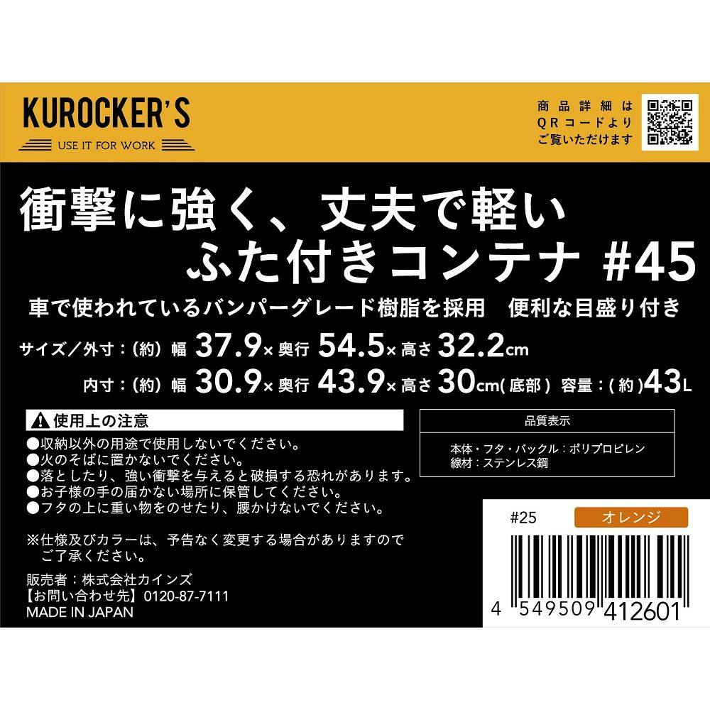 KUROCKER’S 衝撃に強く、丈夫で軽い ふた付きコンテナ オレンジ #45(販売終了)