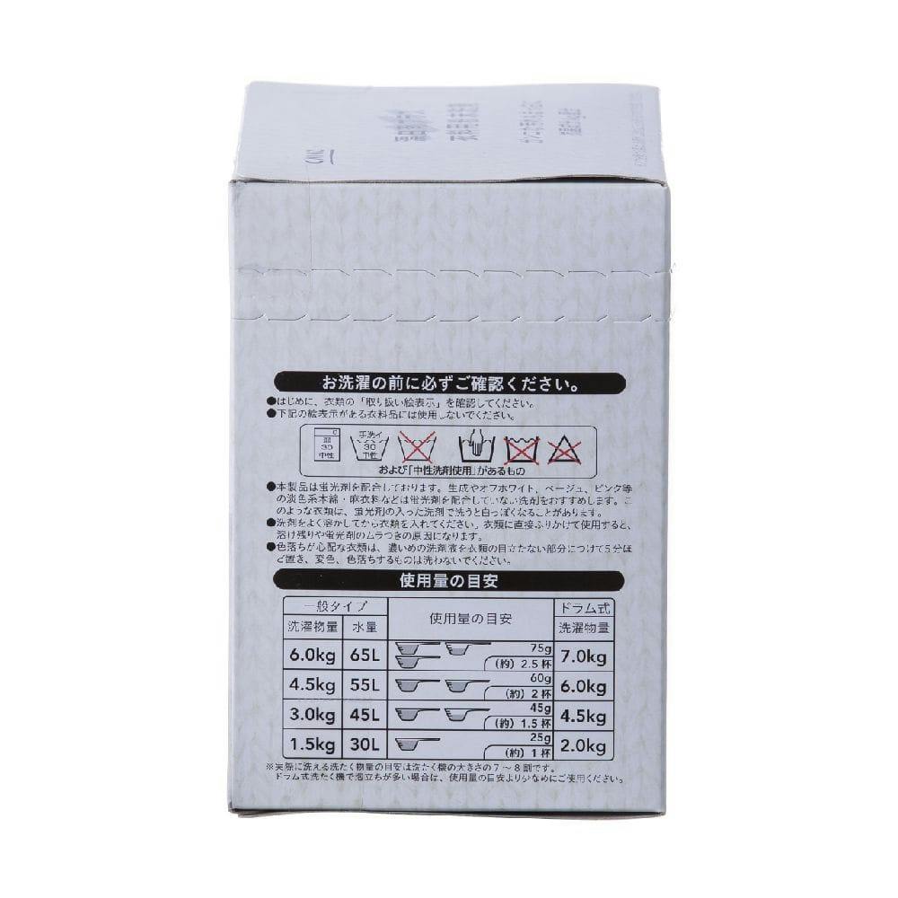 ●洗濯物量6.0kg/水量65L/2.5杯(75g) ●洗濯物量4.5g/水量55L/2杯(60g) ●洗濯物量3.0kg/水量45L/1.5杯(45g) ●洗濯物量1.5kg/水量30L/1杯(25g)