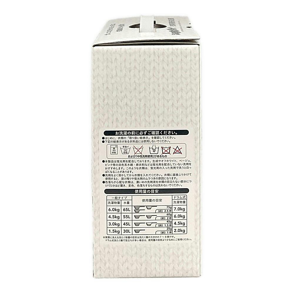 ●洗剤をよく溶かしてから衣類を入れてください。衣類に直接ふりかけて使用すると、溶け残りや蛍光剤のムラつきの原因になります。●色落ちが心配な衣類は、濃いめの洗剤液を衣類の目立たない部分につけて5分ほど置き、変色、色落ちするものは洗わないでください。