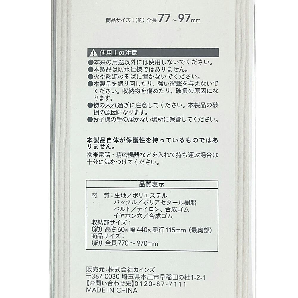 ●生地/ポリエステル ●バックル/ポリアセタール樹脂 ●ベルト/ナイロン、合成ゴム ●イヤホン穴/合成ゴム
