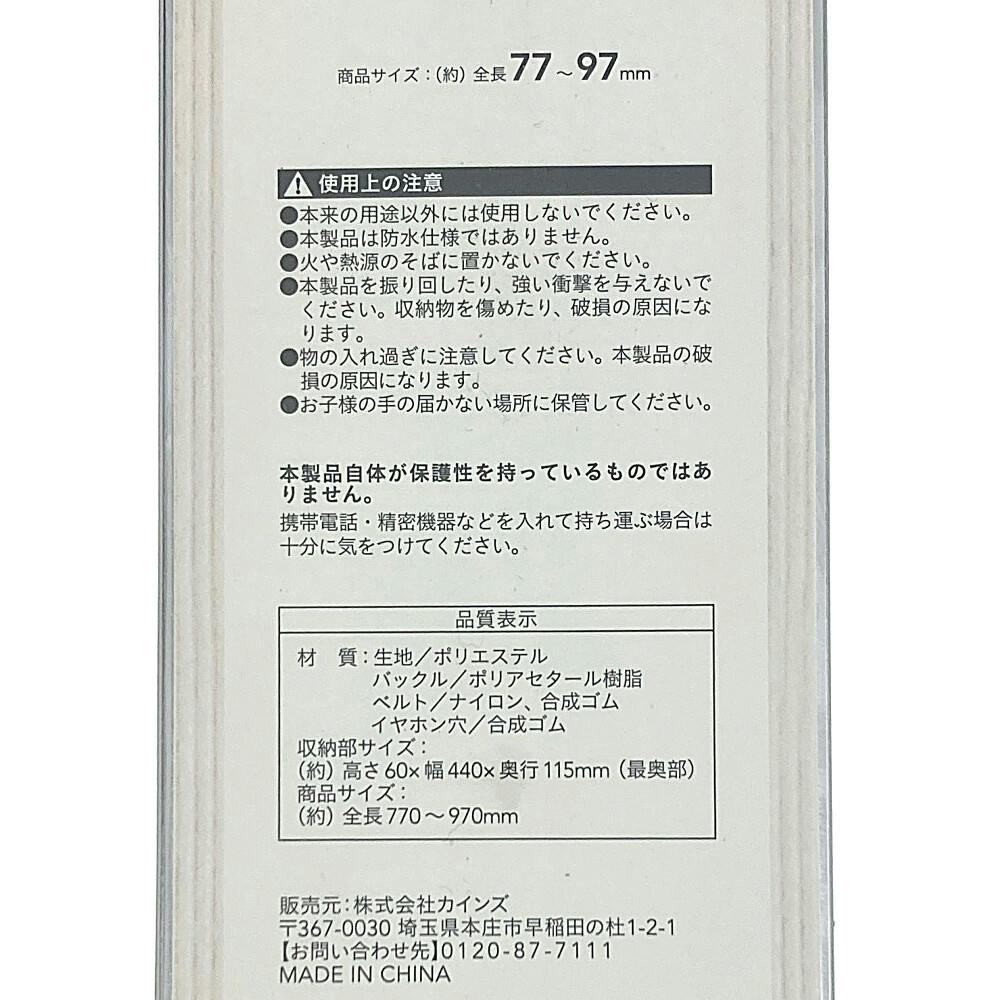 ●生地/ポリエステル ●バックル/ポリアセタール樹脂 ●ベルト/ナイロン、合成ゴム ●イヤホン穴/合成ゴム