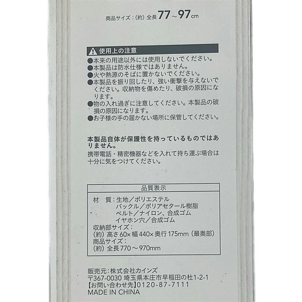 ●生地/ポリエステル ●バックル/ポリアセタール樹脂 ●ベルト/ナイロン、合成ゴム ●イヤホン穴/合成ゴム