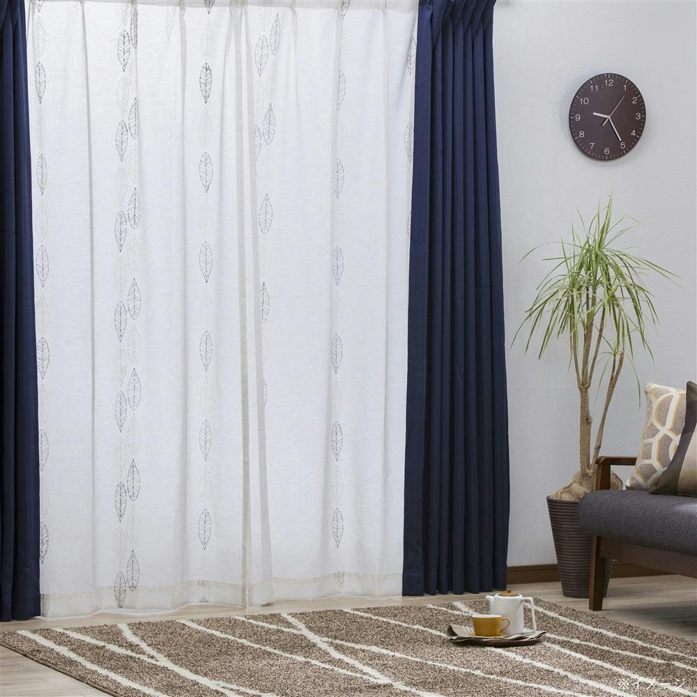 クスノキリーフ 100×108cm 2枚組 レースカーテン