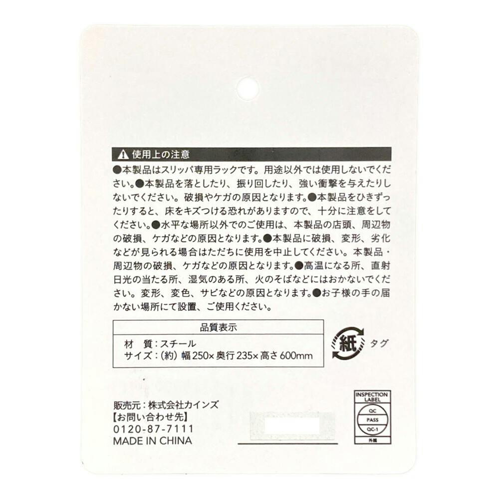 ●本製品はスリッパ専用ラックです。用途以外では使用しないでください。●本製品を落としたり、振り回したり、強い衝撃を与えたりしないでください。破損やケガの原因となります。